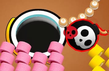 盤面に散らばるアイテムを吸い込みながら穴を成長&指定されたアイテムを集めるカジュアルゲーム。