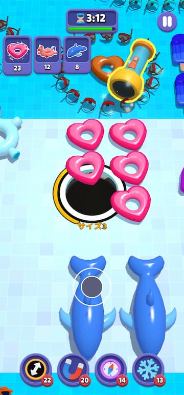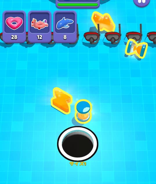 穴のレベルが上がるとサイズも大きくなるので、たくさんのアイテムをどんどん吸い込めて爽快です。