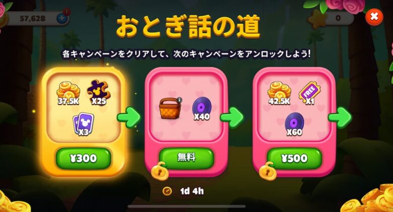 ディズニーソリティアの最低課金額は300円でした。(筆者プレイ時/iOSで確認)