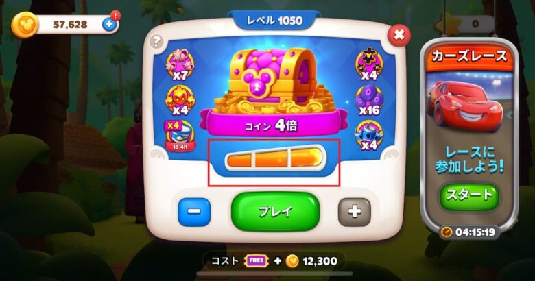 通常モードのほかに、かかるコインが2倍、4倍になる代わりにクリア報酬(コインやイベントアイテム)も2倍、4倍になる