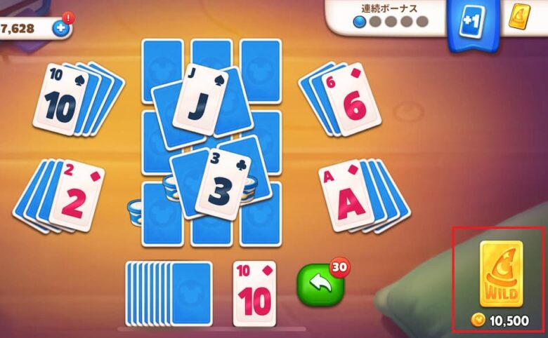 わたしの場合、【盤面のカードがあと1枚の状態】で手詰まりになったらワイルドカードを買う、という手法を取っていました。
