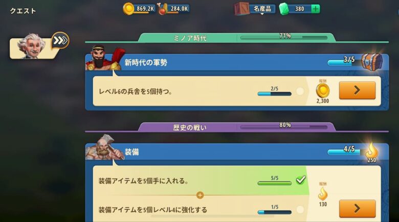 わたしは序盤(レベル5~6くらい)の報酬だけ取っていましたがここをガッツリ取り組めばもう少し早く終わらせられると思います。