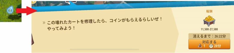 「出来事」の発生している箇所をタップして住民を派遣すると、一定時間経過後にアイテムがゲットできます。