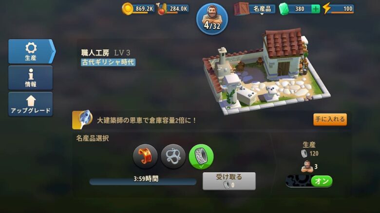 時代が進むとそれに合わせて要求されるアイテムも変わるので、施設のレベルが上げられるようになったら上げましょう。