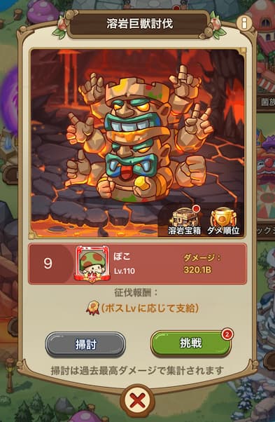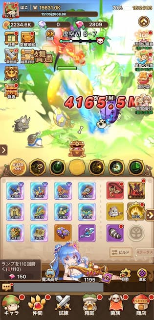 2026年2月現在ではキノコ伝説で経験値を獲得する手段はランプの消費(=装備の分解)しかないと思われるので、毎日ひたすらランプを集めるのが主なプレイ内容となります。