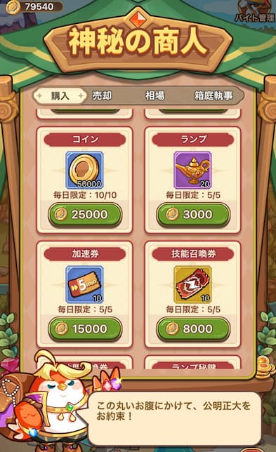 そのほか、「神秘の商人」で箱庭コインを消費してアイテムを購入することができます。