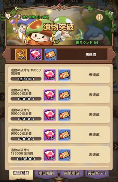 「〇〇突破」のイベントは定期的に開催されている強化イベントで、指定されたものの強化に応じてアイテムがもらえます。