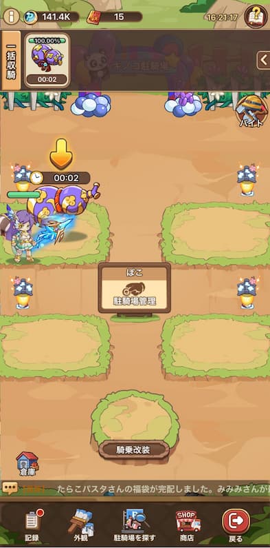 騎乗の種類の数だけ駐車できるのですべての騎乗を駐車しておきましょう。