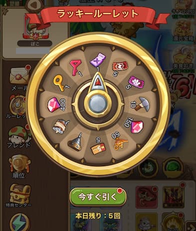 1日5回まで無料(1回まわすごとに5分クールタイムあり)