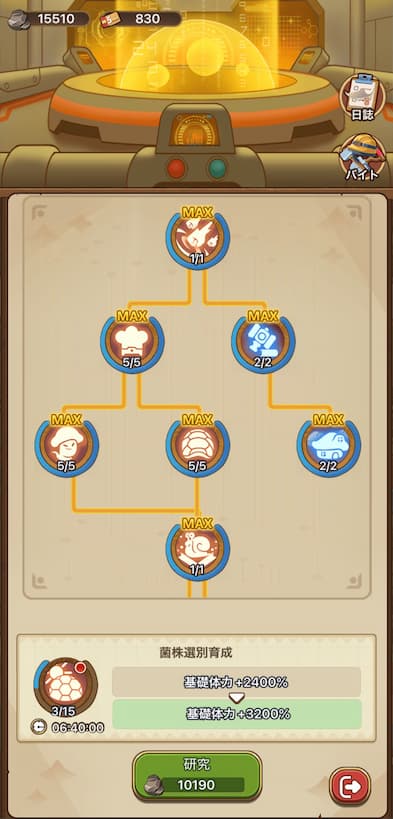 研究突破イベントが終わった後は適当に貯まってたら消化、くらいで進めていましたが、攻撃力の伸び率などなかなか大きいので忘れずチェックしておくと良いと思います。