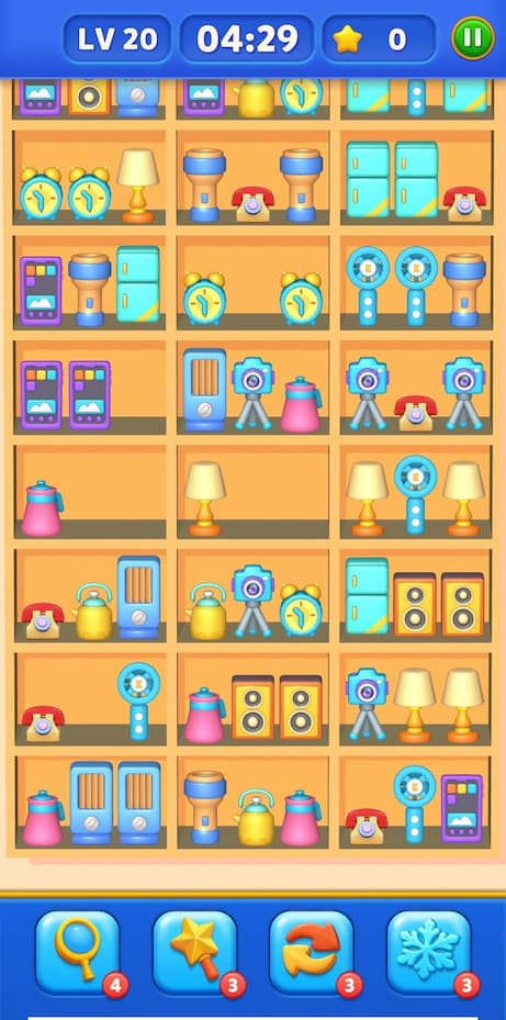 同じオブジェクトを3つ揃えるとそのオブジェクトが消えて、奥にある新しいオブジェクトがせり出てきます。